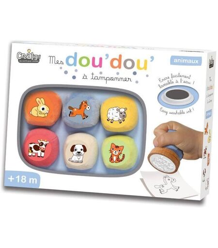 Les premiers tampons des tout ptits ! Coffret de tampons destiné aux enfants à partir de 2 ans sur le thème des animaux. Ils sont composés d'une boule en velours pour une bonne prise en main, la boule est détachable et lavable en machine. Les coffrets contiennent 6 tampons, un encreur géant facilement lavable à l'eau. ...