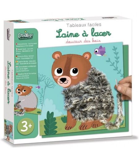 Un coffret qui saura ?merveill? les enfants !. Gr?ce aux cartes ? lacer et ? la jolie laine les enfants cr?eront des douces fourrures d'animaux.. Cette activit? cr?ative permettra aux enfants de d?velopper leur dext?rit? tout en s'amusant. Contient 5 cartes de format 18 x 18 cm en carton ?pais avec un ours, un renard, un ?cureuil, un raton laveur et un loup.. 3 brins roux de laine. 3 brins marron clair de laine. 4 brins marron fonc? de laine. Longueur des brins 80 cm ...