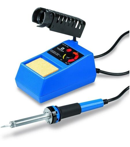 La station de soudure 1600 de KEMPER délivre une puissance de 48W. La température peut être réglée de 0 à 400°C. Une panne de 5mm de diamètre est équipée sur le fer. Idéal pour tous les travaux d'étamage et de soudage de circuits électriques. Cet appareil contient un repose panne et un éponge pour le nettoyage. - Puissance : 48 W - Poids : 800 g - Panne : Pointue longue durée - Diamètre de panne : 5 mm - Nombre de pannes : 1 - Température : 0 à 400°C - Kit : Eponge - Kit : Repose panne ...
