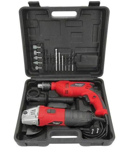 Itools - Perceuse à percussion 500W + Meuleuse 500W + Mallette 17 accessoires