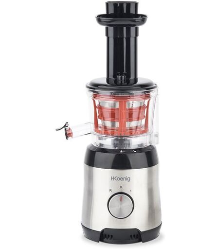 Le robot extracteur de jus H.KOENIG GSX10 vous permet de ré aliser des jus de fruits et de lé gumes frais, riches en vitamines et en nutriments. Les atouts du robot de cuisine H.KOENIG GSX10 : Capacité du ré servoir à jus de 750ml Bec d'introduction extra large Fonction autonettoyante Technologie de pression douce à vitesse lente Helices sans lame qui pré servent les aliments Systè me silencieux Fonction anti-gouttes Puissance de 150 Watts Design compact et corps en acier inoxydable Un extracteur de jus efficace Le robot de cuisine extracteur de jus H.KOENIG GSX10 est doté d'une technologie de pression douce à vitesse lente et d'hé lices sans lame qui pré servent vos aliments, vous assurant ainsi une qualité de jus riches en nutriments. Pratique, l'extracteur de jus est livré avec un ré cipient à jus et un ré cipient pour ré cupé rer les dé chets de vos fruits et lé gumes d'où a é té extrait le jus. Grâ ce à son bec d'introduction extra large, vous pouvez insé rer vos aliments rapidement, sans avoir à les dé couper au pré alable. Avec un bol d'une capacité de 750ml, ré alisez des jus de fruits ou de lé gumes rapidement et en quantité ! L'extracteur de jus GSX10 est é galement é quipé d'un systè me anti-goutte pratique qui vous aide à maintenir un plan de travail propre lors de son utilisation. Compact et performant Le robot de cuisine GSX10 de H.KOENIG bé né ficie de dimensions compactes (20 x 18,5 x 45 cm) et d'un design é lé gant qui s'accordera parfaitement avec votre inté rieur. Grâ ce à ses pieds antidé rapants, il reste positionné sur votre plan de travail sans risque de le voir en glisser lors de son utilisation. Entiè rement en acier inoxydable, il est facile à nettoyer grâ ce à sa fonction autonettoyante et à sa brosse de nettoyage incluse. Bé né ficiant d'un systè me silencieux, l'extracteur de jus GSX10 d'une puissance de 150 Watts sera votre meilleur allié pour vos petits dé jeuners ! ...