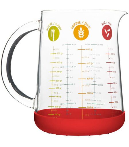Le verre doseur indispensable au quotidien ! Matière : verre borosilicate - Haute résistance Graduations en g, mL, cL, dL et L - Polyvalence Base en silicone antidérapante - Stabilité Bec verseur pratique pour transvaser Disponible en 200ml, 500ml ou 1L Passe au micro-ondes et au réfrigérateur ...
