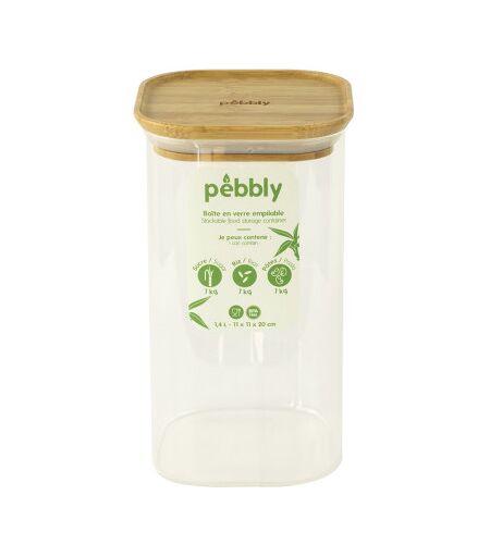Boîte de conservation haute et carrée en verre pebbly avec couvercle en bambou 1,4 l