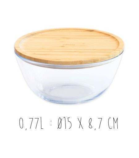Bol de conservation en verre pebbly avec couvercle en bambou 0,77 l