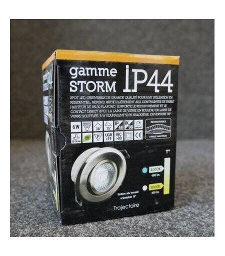Spot encastré LED 6W alu brossé orientable Ø 88mm 4000K 480lm alim 230V dimmable 38° recouvrable IK08 IP44 STORM ISO IP44 TRAJECTOIRE 5 Tarif année : 2019 TRJ004674 ...