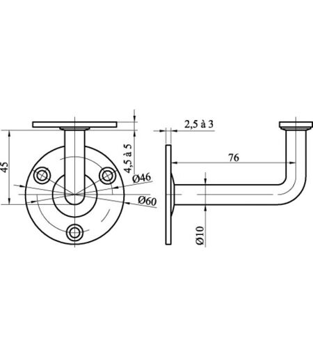En inox 304 avec platine 430. Hauteur : 45 mm. Déport : 76 mm. Diamètre tige : 10 mm. Usage intérieur uniquement. ...