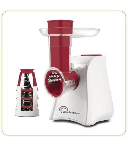 Découpe-légumes Easy Veggie - 5 cônes amovibles : Râpe fine, râpe a julienne, trancheuse fine, trancheuse épaisse, grattoir a fromages - Large plateau sur goulotte - Systeme de sécurité d'attache des cônes. ...