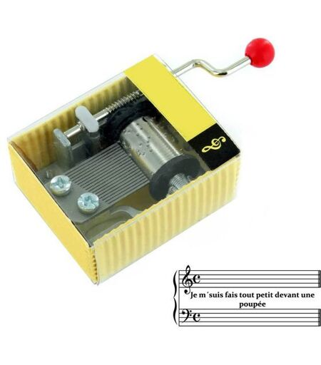 Boîte à musique / mécanisme musical / mouvement musical à manivelle de 18 notes dans une boîte en carton avec fenêtre transparente pour voir le mécanisme. A NOTER que nous proposons aussi sur ce site une boîte en bois pour renforcer le volume sonore des mécanismes à manivelle. Mélodie de cette boîte à musique ou mécanisme musical à manivelle: Je msuis fais tout petit devant une poupée (Georges Brassens). ...