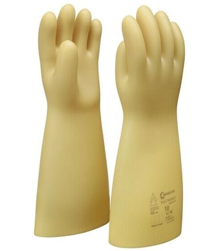 Gants électricien GLE36 - Classe 1 de Regeltex Conforme à la norme EN60903 Classe : 1 Finition extérieure : bords tranchés Doublure : latex naturel Finition intérieure : poudrée Tension maxi d'utilisation : 7 500 volts ...
