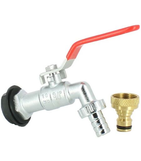 MULTICUVES Robinet laiton chromé 15 mm + Nez 20X27 pour Récupérateur Eau