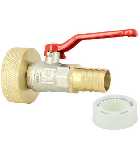 Cet accessoire est spécialement conçu pour les cuves 1000 litres plastique (aussi appelé IBC ou GRV) utilisées pour la récupération, le stockage et la consommation d'eau de pluie. Il se fixe directement sur la vanne de votre cuve 1000 L. Ce raccord dispose d'une vanne quart de tour avec un embout droit cannelé de 25 mm vissé sur la sortie femelle 3/4'' Pas du gaz (l'embout droit est dévissable). Caractéristiques : Matière : Laiton Entrée : Taraudée femelle S60X6 Sortie : Embout cannelé droit en laiton - diamètre Ø 25 mm extérieur Rouleau de Téflon PTFE inclus Poids : 530 g Article neuf +Raccord cuve S60X6 laiton - Vanne 1/4 de tour laiton + Embout cannelé 25 mm Ma vanne de cuve doit être au format S60X6 Filetage S60X6 Appelé aussi filetage au "pas d'artillerie", le filetage S60X6 le plus fréquent en France. D1 = Diamètre extérieur de sortie de la vanne (filets compris) : Entre 58 et 61 mm P1 = Espace entre filet : 6 mm Nombre de filets de la vanne : Compris entre 3 et 4. ne s'adapte ...