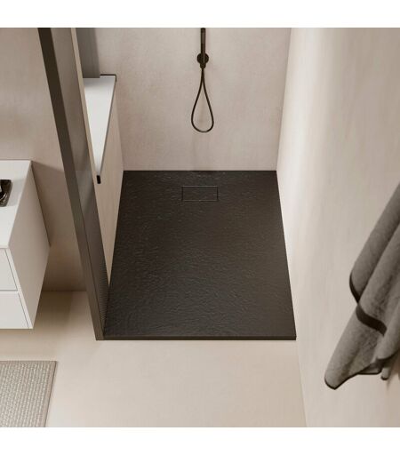 Stano. - Receveur de douche 90 x 140 cm extra plat piatto en SoliCast® surface ardoisée noir