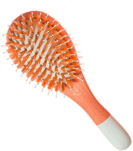 Les poils de sanglier combinés aux broches en nylon démêlent les cheveux tout en les lissant. Grâce à leur flexibilité, les broches en nylon démêlent les cheveux en douceur et réduisent l'électricité statique générée par les poils de sanglier. Les poils de sanglier scellent les cuticules des cheveux et leur donnent plus de brillance. Les pointes sphériques et le coussinet en caoutchouc protègent le cuir chevelu et le massent en douceur. Convient à tous les types de cheveux. Manche très résistant en bois de hêtre. Utilisation : vous pouvez utiliser la brosse sur cheveux secs ou mouillés pour les démêler et les lisser sans effort. Nous vous recommandons de brosser vos cheveux au moins deux fois par jour. Pour nettoyer votre brosse Bachca, enlevez tous les cheveux coincés entre les poils, puis appliquez une petite quantité de shampooing doux, frottez délicatement et rincez abondamment. Laissez sécher votre brosse sur un chiffon propre, les poils vers le bas, pendant environ une journée. N'utilisez pas la brosse sous l'eau et évitez tout contact prolongé avec l'eau. ...