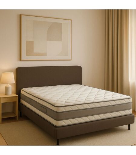 Caractéristiques du Matelas Face de contact : Mousse à Mémoire de Forme 55 kg/m3 + mousse polyuréthane Haute Résilience Face hiver : Tissu 100 % polyester 180 g/m2 - rembourrage 450gr/m2 60% cotton 40% polyester Accueil : mousse à mémoire de forme 5 cm Ame : 100 % polyurethane 13,5 cm Hauteur totale : 21 cm Soutien : Très Ferme pour un face de contact confortable, un très bon soutien et un bon maintien de la colonne vertébrale. Ce matelas procure une très agréable sensation de confort de couchage et d’allègement, grâce à la texture enveloppante de la face de contact Mousse à Mémoire de Forme. Il épouse très exactement la morphologie de votre corps, et supprime toutes les zones de pression, notamment au niveau du bassin, du dos et des épaules. Durabilité : Deux faces de couchage pour une durée de vie du matelas plus longue. Face hiver : 6 cm de face de contact Mousse à Mémoire de Forme haute densité 55 kg/m3 Face été : 3 cm de mousse polyuréthane haute densité 30 kg/m3 Tissu stretch ...