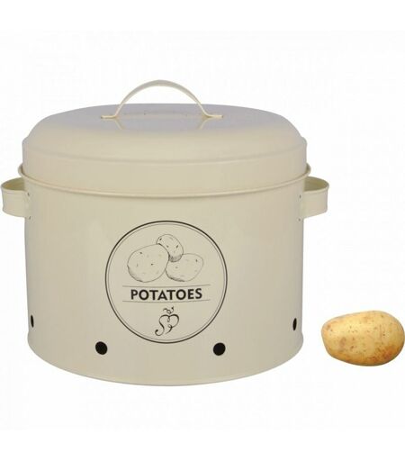 Stockez vos pommes de terre dans une boite décorative en retardant la germination. - Boite de conservation métallique et décorative pour stocker vos pomme de terre dans votre cuisine, garage ou cave sans qu'ils puissent germer. L'inscription en anglais apporte une touche finement British. Le pot comporte des trous de ventilation pour une meilleure conservation. Caractéristiques : Hauteur : 22 cm Diamètre : 22.5 cm Capacité : 6.3 litre Métal Couleur : beige Couvercle avec poignée ...