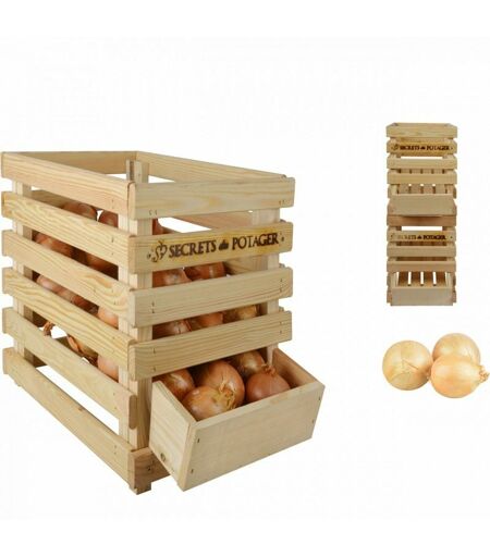 Avec la caisse-resserre vous aurez la meilleure façon de conserver vos oignons, ails ou échalotes dans un endroit sombre et bien ventilé. Les nouvelles récoltes doivent être placées au-dessus de la caisse pour que le système de fond incliné permette de prélever en premier le stock le plus ancien. Caisse- resserre à monter, visserie incluse, en pin brut avec déversoir. - Caractéristiques : Hauteur : 40 cm Longueur : 39.8 cm Profondeur : 48.20 cm Poids : 3.93 kg Matériau : bois de pin Empilable - Structure ouverte - ventilation sur le côté Vendu seul ...