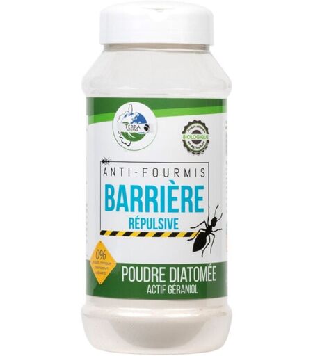 LES + PRODUIT : Repulsif fourmi biologique très efficace La terre de diatomée est redoutable pour éliminer les fourmis Sans aucun danger pour les hommes , les animaux domestiques et la planète L'application est simple et les résultats sont rapides Idéal pour éliminer toutes les fourmis qui se baladent chez vous ou pour détruire la fourmilière si celle-ci est localisée CARACTÉRISTIQUES : La terre de diatomée est composée de fossiles d'algues microscopiques très coupantes qui éliminent les fourmis très rapidement Elles meurent en 24 heures par déshydratation une fois blessées Utilisation en intérieur comme en extérieur Repulsif fourmi terre de diatomée également disponible en version de 1,5kg Application de ce repulsif fourmi biologique : Saupoudrez la terre de diatomée sur les lieux de passage des fourmis . Environ 50g suffisent par mètre carré. La pluie fait disparaitre le produit, il faut donc renouveler le traitement de cet anti fourmi en cas d'utilisation à l'extérieur par temps ...