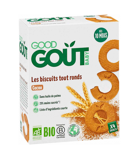 Parapharmacie > Bébé & Maman > Alimentation bébé > Repas bébé > Boudoirs bébé Good Goût Biscuits Tout Ronds Cacao Dès 10 Mois Bio 20 Biscuits - Boudoirs bébé - Pharmacie en ligne LaSante.net