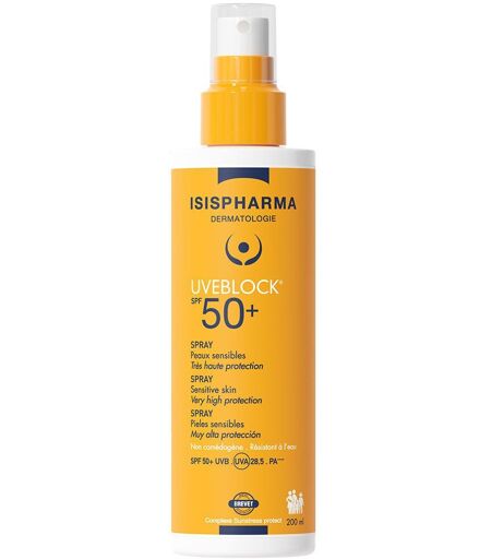 Le spray Uveblock SPF50+ vous offre une protection de haute qualité contre les effets nocifs du soleil grâce à son complexe SUNSTRESS PROTECT.IndicationSprayApplicationSur le corpsVaporisez Uveblock SPF50+ Spray sur votre corps quelques minutes avant de vous exposer au soleil. Ne l'appliquez pas directement sur votre visage. Vaporisez le produit dans votre main, puis appliquez-le sur votre peau.Renouvelez fréquemment l'application de la protection solaire ou après vous être baigné, avoir transpiré ou vous être essuyé avec une serviette.IngrédientsAQUA (WATER), ETHYLHEXYL METHOXYCINNAMATE, DIETHYLAMINO HYDROXYBENZOYL HEXYL BENZOATE, DIISOPROPYL ADIPATE, GLYCERIN, ETHYLHEXYL TRIAZONE, BIS-ETHYLHEXYLOXYPHENOL METHOXYPHENYL TRIAZINE, CYCLOPENTASILOXANE, SORBITAN STEARATE, METHYLENE BISBENZOTRIAZOLYL TETRAMETHYLBUTYLPHENOL [NANO], LAURYL GLUCOSIDE, POLYGLYCERYL-2 DIPOLYHYDROXYSTEARATE, MAGNESIUM ALUMINUM SILICATE, GLYCERYL STEARATE, PEG-100 STEARATE, CAPRYLYL GLYCOL, METHYL METHACRYLATE CROSSPOLYMER, SODIUM BENZOATE, DISODIUM EDTA, DECYL GLUCOSIDE, CAPRYLHYDROXAMIC ACID, PARAFFINUM LIQUIDUM (MINERAL OIL), PROPANEDIOL, CITRIC ACID, SILICA, ECTOIN, PROPYLENE GLYCOL, BHT, XANTHAN GUM, SOPHORA JAPONICA FLOWER EXTRACT ...