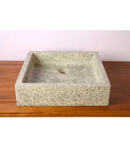 Saniteck - Vasque à poser timbre crème moucheté carrée en Terrazzo pour salle de bain