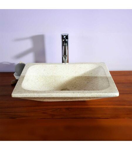 Saniteck - Vasque à poser rectangulaire en Terrazzo 50x37 cm crème moucheté pour salle de bain