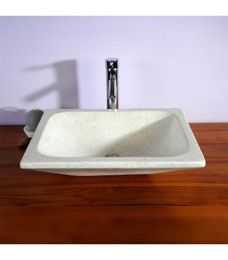Saniteck - Vasque à poser rectangulaire blanc pigmenté en Terrazzo pour salle de bain design