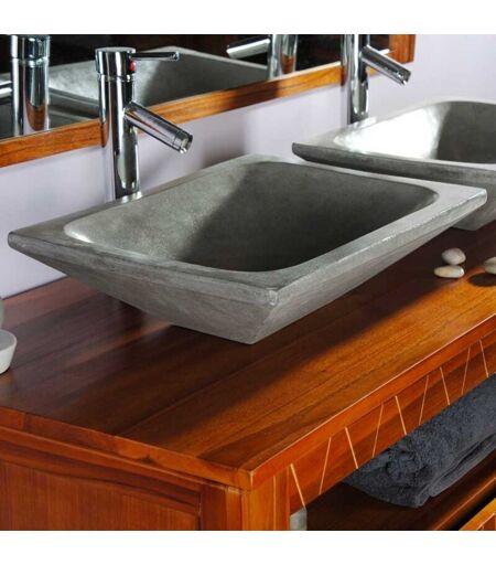 Saniteck - Vasque à poser rectangulaire gris foncé en Terrazzo pour meuble salle de bain