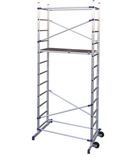 Échafaudage tout aluminium , composé de 2 réhausses et muni de jonctions en acier plastifié. Cet échafaudage permet d'effectuer des travaux à une hauteur de 4,36m maximum, de plus son assemblage est rapide grâce à un système de verrouillage à expansion automatique. Hauteur de travail : 4,36 m Hauteur plateau : 2,36 m Hauteur d'échafaudage : 4,36 m Dimension plancher : 1,56 m x 0,51 m ...