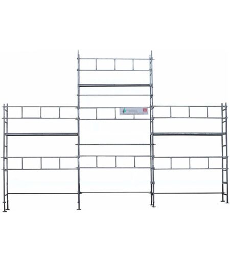 Description générale Échafaudage en acier peint, fabriqué à Saint-Étienne, offrant une surface de travail confortable de 3 m x 0,80 m. Il permet un rattrapage de niveau millimétrique jusqu'à 30 cm grâce à ses pieds vérins. Réglable tous les 50 cm en hauteur. Spécifications techniques Montants des échelles : diamètre 45 mm, épaisseur 2 mm Largeur : 0,80 m Longueur : 9 m Hauteur de travail : jusqu'à 7 m Poids : 413 kg Compatibilité et accessoires Structure : 8 pieds de 50 cm réglables sur 30 cm 10 échelles de 2 m 7 gardes corps de 3 m 7 barres de lisse de 3 m Planchers : 6 planchers en acier galvanisé de 3 m x 0,36 m Amarrage : 2 amarrages piton, encrages et colliers Installation Installation simple grâce à un système d'accroche à clavettes, permettant un assemblage rapide et sécurisé. Utilisation Idéal pour les travaux en hauteur, cet échafaudage respecte les normes en vigueur, garantissant sécurité et stabilité lors de son utilisation. ...