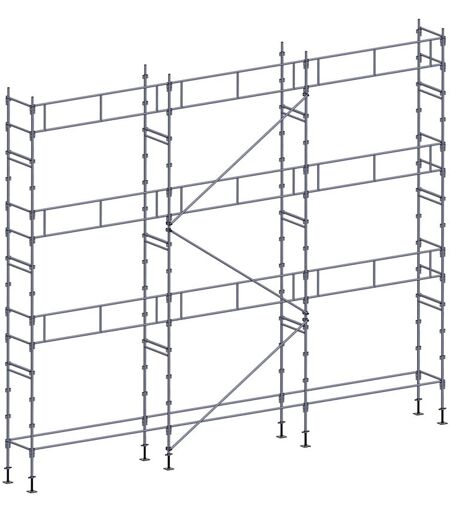 Structure garde-corps ES45 de façadier 80 m² , fabriqué dans notre usine de Saint-Étienne. Cette gamme d'échafaudage galvanisé est adaptée aux travaux de peinture, ravalement, isolation, couverture, en neuf ou en rénovation. Configurable selon vos besoins, polyvalent, robuste, sûr et facile à monter. Classe 4 (300kg/m²) Montants des échelles Ø 45 mm , épaisseur 2,2 mm. Largeur : 0,80 m Longueur de travail : 10 m Hauteur de travail : 8 m Respectant les normes EN 12810 et EN 12811 Conformes au décret 2004-924 : avec plinthes (à rajouter dans votre panier) Membre du collectif de La French Fab Résistant Léger Longue durée de vie Composition : Référence ES4580G : 08 Vérins de niveau 65 cm 08 Montant 1 m 12 Échelles de 2 m 06 Barres de lisse 3 m 14 Lisses d'extrémité 0,80 m 09 Garde-corps 3 m 03 Diagonales 3 x 2 m ...