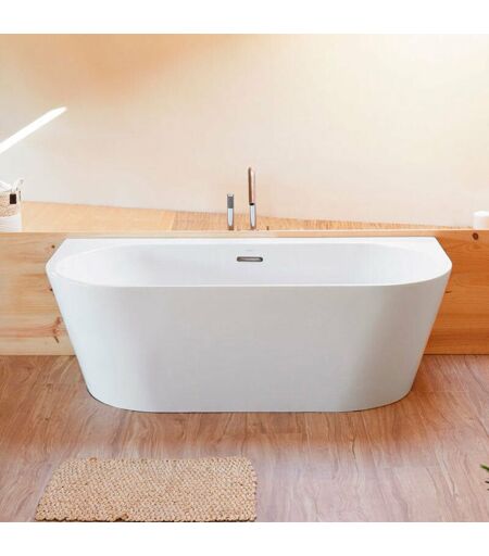 Dont €1.80 d'éco-participation. Baignoire design en acrylique de type semi-îlot ovale, avec vidage inclus. Dimension : 170 cm. Baignoire avec tablier et vidage inclus. Côté mur, les angles sont droits ; à l'opposé, les angles sont arrondis. À noter : - Vidage, siphon et bonde chromée inclus. - Robinetterie vendue séparément. Livraison en journée au pied du camion uniquement. ...