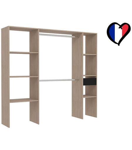 Craquez pour ce grand dressing fabriqué en France. Il sera parfait pour ranger, organiser vos vêtements, chaussures, ou encore accessoires en fonction des saisons. Il se composé de 3 étagères de 35 cm, 3 étagères de 55 cm et de 2 penderies. Ce grand dressing ouvert vous offrira une vue d'ensemble sur toutes vos affaires et vous permettra de composer des tenues en un rien de temps. Caractéristiques techniques Couleur principale: Bois Structure du meubles : Panneau de particules 15 mm Type de finitions : Mélaminé Nombre de colonnes : 2 Types de rangements: 6 étagères, 1 tiroir et 2 penderies 3 étagères de 35cm 3 étagères de 55cm 1 tiroir 35cm 2 tubes de penderies de 100cm Matière tube penderie : Acier galvanisé Extensible : non Fabriqué en France Entretien Utiliser uniquement un chiffon doux légèrement humide. Ne pas utiliser de solvant. Dimensions Dimensions totales : 198 x 39,9 x 180,4 cm Dimensions des colonnes : 180 x 60 x 40 cm / 180 x 38 x 40 cm Dimension du tiroir : 32,7 x 29,9 x 12 cm Dimensions des étagères : 56,8 x 40 cm / 35 x 40 cm Dimensions des tubes de penderie : 100 cm Epaisseur des panneaux : 15 mm Poids total : 52,2 kg Conditionnement Produit livré dans 2 cartons. Montage facile, notice incluse. Colis 1 : 190,3 x 41,2 x 8,4 cm / 24,9 kg Colis 2 : 190,3 x 41,2 x 8,4 cm / 27,3 kg * Livraison pas de porte offerte * Garantie 2 ans ...