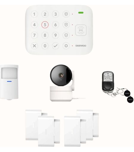 Daewoo Pack Alarme Connectée Wifi / GSM Vigilia VIG101+ – Système Sans Fil et Sans Abonnement, Compatible Animaux, Détecteurs Inclus + Caméra de