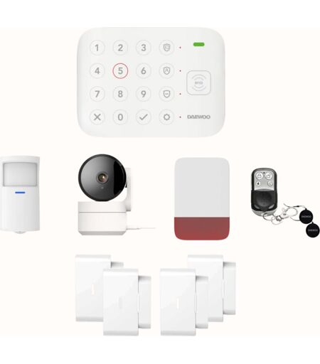 Daewoo Pack Alarme Connectée Wifi Vigilia VIG102 – Système Sans Fil et Sans Abonnement, Compatible Animaux, Détecteurs et Sirène Inclus + Caméra de