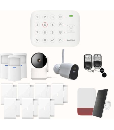 Daewoo Pack Alarme Connectée Wifi / GSM Vigilia VIG104+ – Système Sans Fil et Sans Abonnement, Compatible Animaux, Détecteurs et Sirène solaire