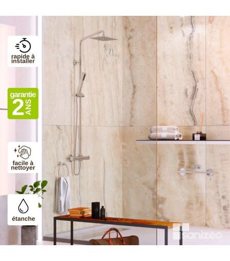 Kobertin-compact - Lot de 2 Panneaux d'Habillage pour Douche et Baignoire, L120l1200.4 cm, effet marbre beige, Sabana by sanizéo