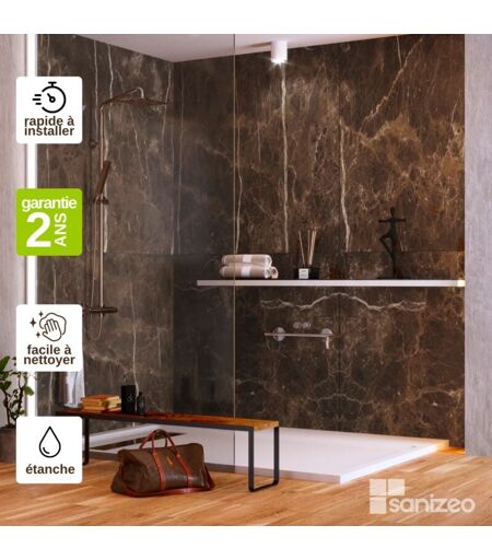 KOBERTIN-COMPACT Lot de 2 Panneaux d'Habillage pour Douche et Baignoire, L120l1200.4 cm, effet marbre marron, Emperador by sanizéo