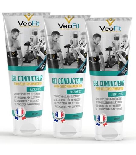 Veofit 3 Gels Conducteur Electrostimulateur 250ml Eucalyptus Made In France Pour Ceinture Abdominale Electrostimulation Contact