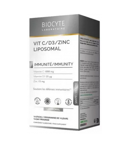 Parapharmacie > Compléments alimentaires > Vitalité - Défenses immunitaires Biocyte Vitamine C/D3/Zinc Liposomal Sticks x 14
