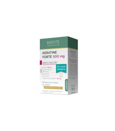 Biocyte Pack Kératine Forte 500 mg Anti Chute Résistance du Cheveu 120 Gélules - Boîte 120 gélules