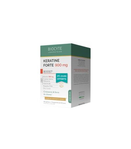 Biocyte Keratine Forte 900 mg Boost Croissance & Force du Cheveu 180 Gélules - Boîte 180 gélules