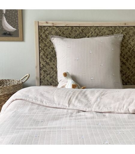 LITTLE CREVETTE Parure de lit enfant taie et housse de couette 140x200 cm gaze de coton bio Nils