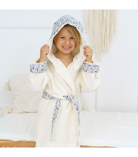 Peignoir enfant écru avec ouverture totale sur le devant. En tissu éponge doux et épais. Capuche et revers de manches décorés d'un imprimé fleuri. Petites oreilles d'ours cousue sur la capuche. Ceinture entièrement cousue au dos pour plus de sécurité, on ne peut pas se prendre les pieds dedans. Composition : éponge 380 g/m2 en pur coton* tissu popeline 100% coton* *coton issu de l'agriculture biologique Utilisation : sortie de bain ou robe de chambre dès 2 ans existe en 3 statures : 2/3 ans (longueur dos 57 cm) - 4/5 ans (longueur dos 66 cm) - 6/7 ans (longueur dos 76 cm) lavable en machine à 40°C - sèche-linge autorisé Fabriqué au Portugal. Création exclusive Little Crevette. ...