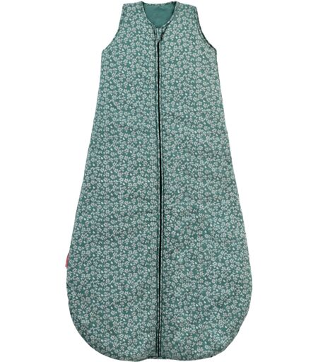 Turbulette mixte en percale de coton bio*, ouatinée pour la mi-saison et l'hiver. Imprimé motif fleurs et lapins écrus sur fond vert sapin. Doublure intérieure unie vert foncé coordonné. Facile à enfiler et bien large pour les pieds ! Dimension : longueur 130 cm Composition : extérieur et doublure en percale : 100% coton* (80 fils) garnissage : 100% polyester * coton issu de l'agriculture biologique Type d'ouverture de la gigoteuse : ouverture complète par zip sur le devant Utilisation : TOG : 2,5. Cette turbulette peut être utilisée toute l'année dans une chambre chauffée entre 18 et 21° Convient pour des enfants de 3 à 6 ans : taille de l'enfant de 105 à 125 cm environ Ne convient pas avant les 30 mois de l'enfant Création exclusive Little Crevette. ...