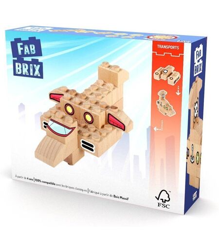 Coffret FabBrix Transports 16 pièces : 14 briques en bois, 2 briques exclusives double-face, une planche de stickers et un guide de construction. Permet de construire un avion, un bateau et un tank. Découvrez les FabBrix : des briques de construction en bois massif, issues de forêts certifiées FSC, 100% compatibles avec les briques de construction classiques. Ajoutez-y des stickers pour donner vie à vos créations ! ...