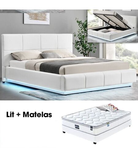 ATTENTION : Livraison en pas de porte uniquement Ce lit moderne Alexi Blanc 140cm avec coffre de rangement et matelas à suspension ressorts ensachés est un lit extrêmement fonctionnel avec un design linéaire et élégant. La tête de lit du sommier impose et impressionne par sa taille et ses grands carreaux au relief ciselé. Notre gamme de lits design Alexi vous offrira non seulement un sommeil reposant , mais aussi beaucoup d' espace de rangement . Ce lit 140 dispose d'un système de couchage complet sous la forme d'un sommier à lattes . Facile à entretenir, il suffit de passer une éponge humide pour redonner au lit son aspect d'origine. Grâce à sa bande lumineuse, ce lit à led intégré illuminera immédiatement votre pièce. Le sommier de ce lit adulte se compose de 24 lattes en peuplier, robuste et résistant à la chaleur et à l'humidité. L'ouverture et la fermeture du coffre se fait grâce aux 2 vérins de 600 Newton et d'une barre transversale en acier époxy. Le matelas double à suspension ...