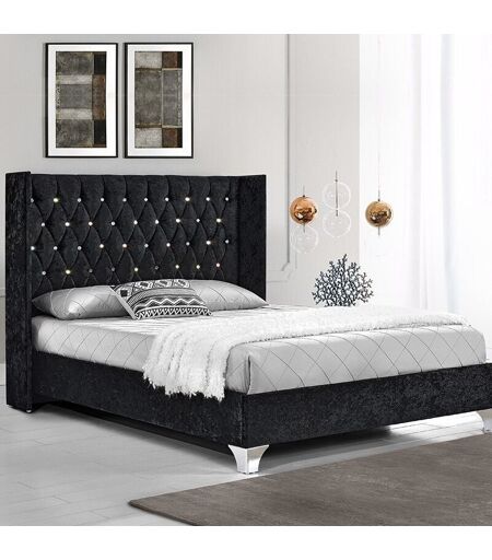 Meubler Design - Lit Capitonné Grand Tête De Lit Focuse - Noir - 140x190, Velours Broyé, Style Baroque, 203 x 151 x 90.5 cm