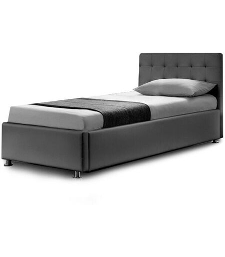 MEUBLER DESIGN Lit Complet Sommier Relevable + Tête De Lit + Cadre De Lit Capitole - Gris - 90x190, Polyuréthane, Style Contemporain, 203 x 101 x 90.5 cm - Meubler