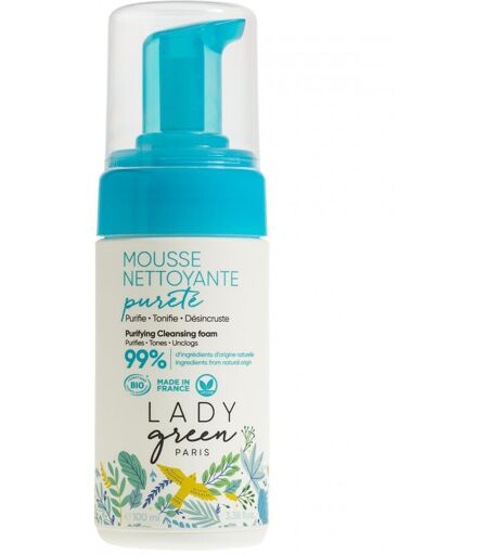 3Suisses : Composée à 99% d?ingrédients naturels et disposant d?une texture légèrement parfumée, cette Mousse nettoyante pureté vous assure une peau douce, saine, hydratée, tonifiée, purifiée et rafraîchie au quotidien. Cette Mousse nettoyante pureté de la marque Lady Green deviendra votre allié du quotidien. Grâce à ses principes actifs à base d'Aloe Vera bio, de Moringa et de citron bio, cette mousse nettoyante vient purifier et nettoyer votre peau en profondeur et y laissant un aspect doux et léger. Votre peau est tonifiée et libérée de toutes ses impuretés. Contenance: 100ml On aime : - Sa texture légère et son parfum frais. L'aloe vera, le moringa et le neem vont nettoyer et purifier la peau. - Le duo gagnant citron/ananas resserrera les pores et rafraîchira la peau. Efficacité prouvée Le produit ne dessèche pas la peau : - 100% Le produit nettoie la peau en douceur - 96% La peau est nette - 100% La peau est propre - 100% La peau est purifiée - 96% TEST D'USAGE SUR 23 FEMMES PENDANT 21 JOURS. Emballages responsables Flacon recyclable. Etiquette en PE végétal issu de la canne à sucre. #pensezautri Ingrédients 99% du total des ingrédients sont d'origine naturelle. 10% du total des ingrédients sont issus de l'Agriculture Biologique. Conseils d'utilisation Déposer 2 à 3 noisettes de mousse au creux de la main puis appliquer sur le visage et le cou humides. Rincer et essuyer. Eviter le contact avec les yeux. Testé sous contrôle dermatologique. Marque: Lady Green Genre: Femme ...