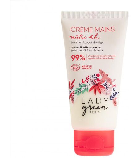 3Suisses : Appliquez cette Crème nutri 4H mains à souhait pour procurer à vos mains une hydratation et une protection parfaites, en plus de profiter d?un doux parfum citronné et d?une grande douceur au quotidien. Pour des mains parfaitement hydratées, adoucies et protégées au quotidien, misez sur les nombreux bienfaits de cette Crème nutri 4H mains. Formulée à base de beurre de karité, elle vous assure une hydratation de 4h. Ce produit est enrichi en poudre de riz.Contenance: 50ml HYDRATE ADOUCIT PROTÈGE Aloe vera bio, Beurre de Karité bio, Citron bio. Une crème mains qui hydrate et protège. Riche en Beurre de Karité, elle assure 4h* d'hydratation, le tout avec un parfum envoûtant de Citron. Sa formule bio enrichie en poudre de riz ne laisse aucun film gras pour une sensation de douceur maximale. Un geste quotidien rapide, simple et gourmand pour des mains, des ongles et des cuticules sublimés. Efficacité prouvée +73% d'hydratation après 1h* Hydratation longue durée: +36% d'hydratation après 4h* *MESURE PAR CORNÉOMÉTRIE SUR 21 FEMMES. Conseils d'utilisation Appliquer aussi souvent que nécessaire en insistant sur le contour des ongles. Testé sous contrôle dermatologique. Emballage responsable Tube en plastique végétal issu de la canne à sucre. Ingrédients 99% du total des ingrédients sont d'origine naturelle. 14% du total des ingrédients sont issus de l'Agriculture Biologique. Appliquer aussi souvent que nécessaire en insistant sur le contour des ongles. Marque: Lady Green Genre: Femme ...